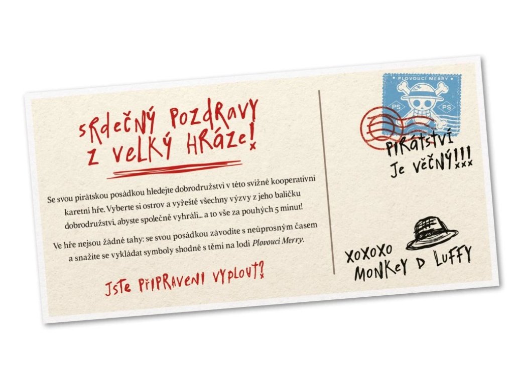 Skupina si společně vybere jeden z pěti balíčků dobrodružství, kterému bude čelit. Poté si každý hráč zvolí jednu z postav Slamáků (Luffy, Zoro, Nami, Usopp, Sanji, Chopper) a vezme si její jedinečný balíček. Jakmile se spustí časovač, hráči odhalí vrchní kartu z balíčku dobrodružství, která může představovat nepřítele, událost nebo spojence.