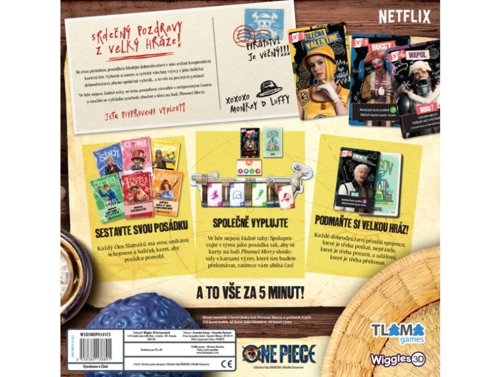 5minutovka: One Piece je kooperativní hra v reálném čase, ve které hráči sestavují pirátskou posádku a závodí s časem, aby společně dokončili dobrodružství na vybraném ostrově dříve, než vyprší čas. Inspirovaná hranou adaptací One Piece od Netflixu, rozvíjí tato hra principy hry 5-Minute Dungeon: hráči spolupracují při přiřazování symbolů pomocí karet ve své ruce, ale navíc musí dodržovat pořadí symbolů, které vytvářejí tím, že vkládají karty na herní desku Plovoucí Merry.