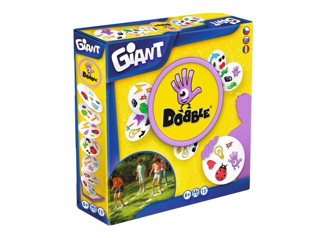 Dobble Giant vychází z klasické postřehoví hry Dobble, ale díky novým pravidlům a velkým kartám z ní dělá zábavnou in- i outdoorovou aktivitu.