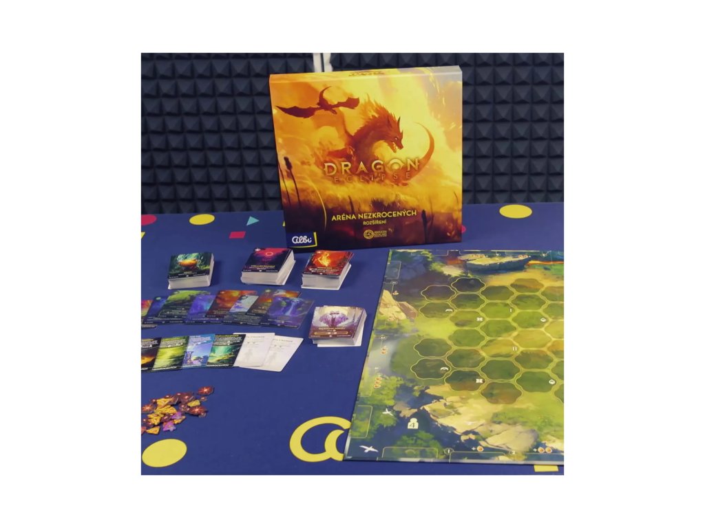 Hra Dragon Eclipse - Aréna nezkrocených obsahuje: 1 velký herní plán arény, 215 akčních karet (odpovídajících těm ze základní hry), 8 prázdných karet, 6 karet arény, 2 karty strategie, 36 žetonů, 20 žetonů energie, pravidla v českém jazyce