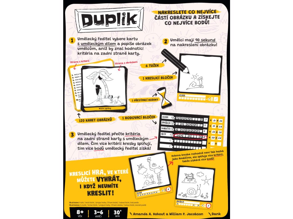 Nakresli co nejvíc detailů a získej co nejvíc bodů! Jeden hráč se stane uměleckým ředitelem a popisuje obrázek z karty, aniž by znal tajná kritéria na její zadní straně. Ostatní hráči mají 90 sekund na to, aby podle jeho popisu obrázek nakreslili. Body pak získávají umělci za splněná kritéria a umělecký ředitel za každé, které se podařilo splnit alespoň jednomu hráči. Po každém kole se role střídají a hra končí, když si každý vyzkouší roli uměleckého ředitele. Vítězí ten, kdo má na konci nejvíc bodů – a nezáleží na tom, jestli umí kreslit, ale jak dobře poslouchá a vnímá detaily.