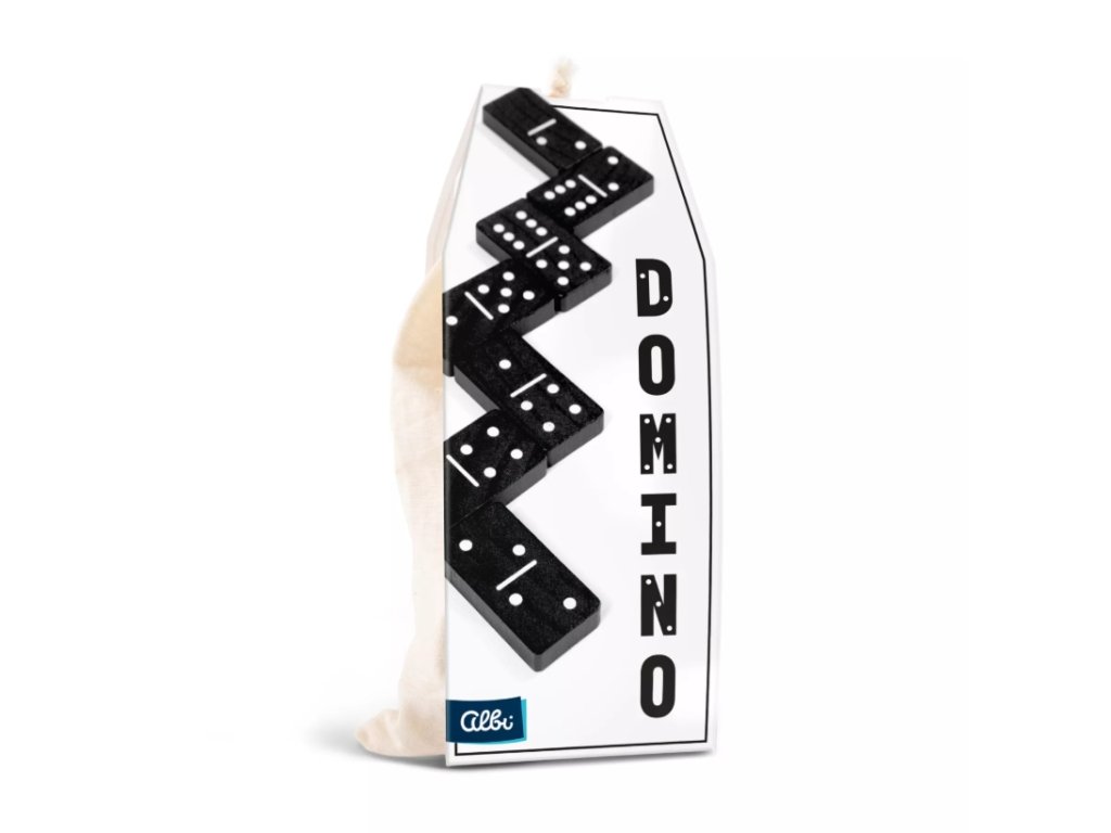 Principem hry Domino je přikládání kamenů na stůl tak, aby se číslice na okrajích shodovaly s číslicemi na koncích již položených kamenů. Hrací kameny jsou v dřevěném provedení.