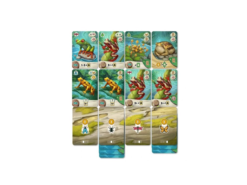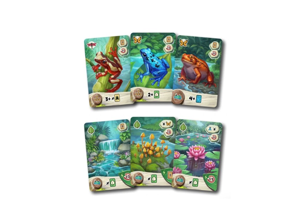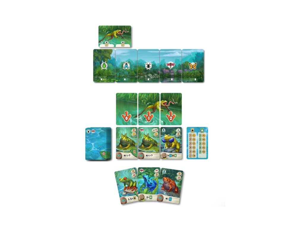 Každá z karet má totiž své specifické skórovací podmínky, které se snaží naplnit, nadto získávají více bodů, pokud je více žab stejného typu vedle sebe.