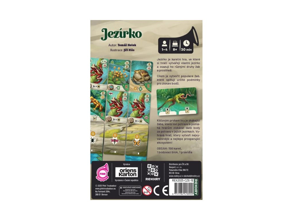 Prvek interakce zajišťuje skákající žába ve středu hrací plochy, se kterou hýbají všichni hráči a která ovlivňuje jejich možnosti. A žáby musíte také nakrmit, budete tak v průběhu hry získávat i jídlo! Jezírko je moc hezká kombinační hra, která má s ohledem na svůj malý rozměr nečekanou hloubku!