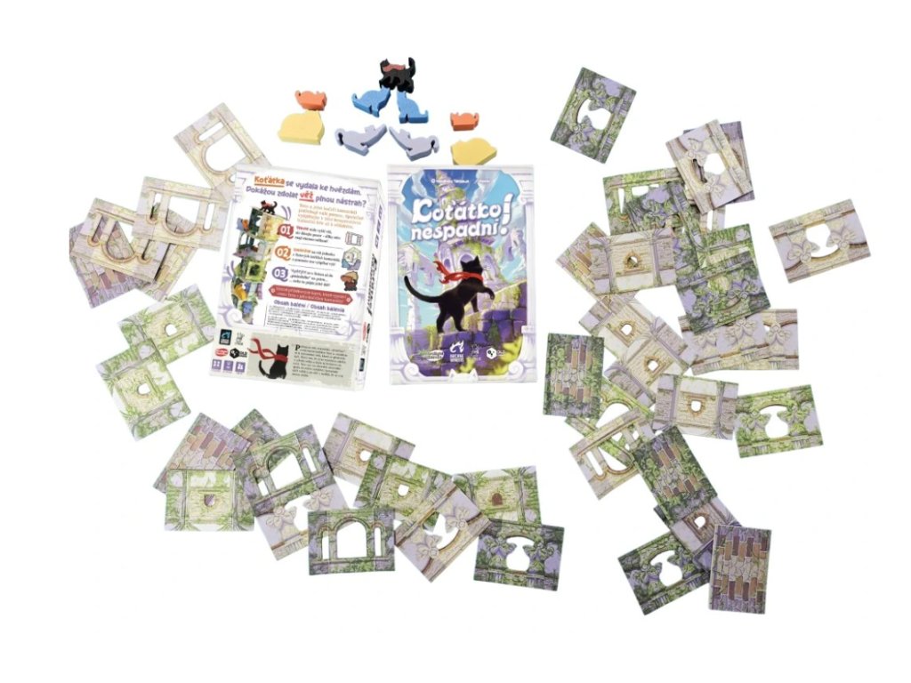 Koťátko, nespadni! je rodinná hra plná šikovnosti a napětí, ve které pomáháte Totovi vyšplhat až ke hvězdám. Nejprve si musíte postavit vlastní věž z nestejně vysokých zdí, po níž bude Tot stoupat vzhůru. Společnost mu dělají jeho kočičí přátelé – někdy stavbu stabilizují, jindy vám ale pořádně ztíží přidávání nových pater.