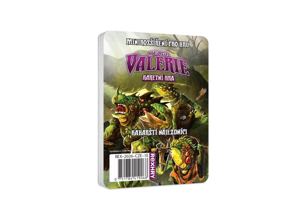 Kaharští nájezdníci je minirozšíření pro populární karetní hru Království Valerie: Karetní hra. Najdete v něm celou novou sadu nestvůr - Kaharské nájezdníky, ještěráky z bažin. Budete se jimi muset probít od potěru až ke kaharskému zabijákovi!