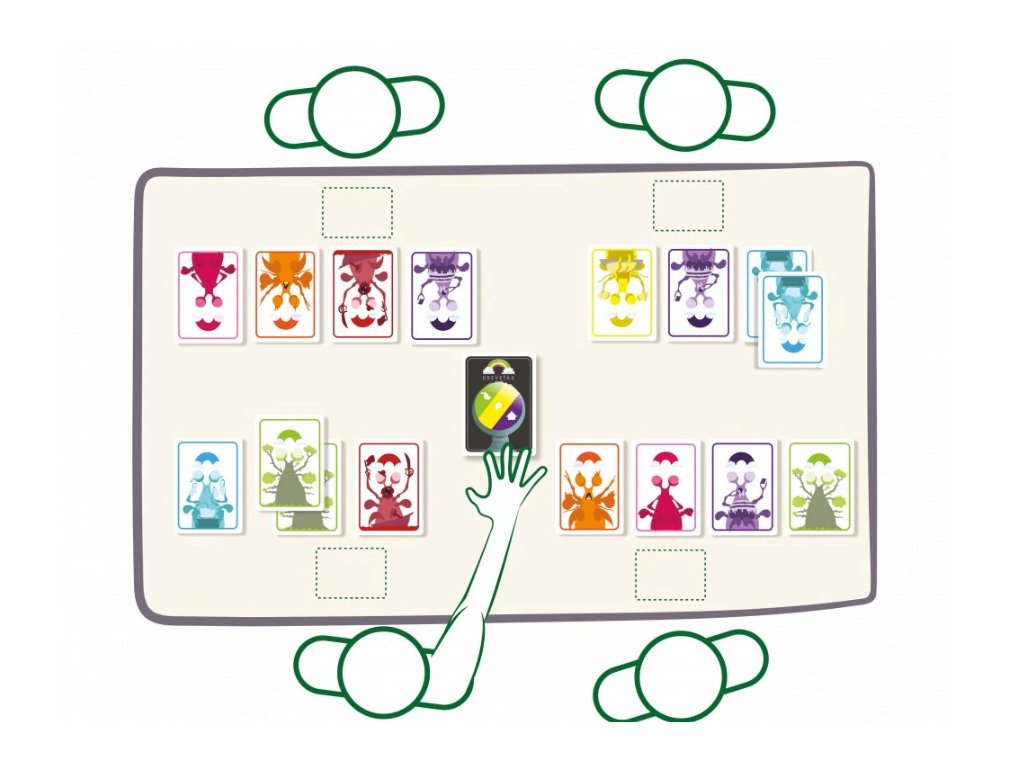 Pestrobarevná zařezávací karetní hra.