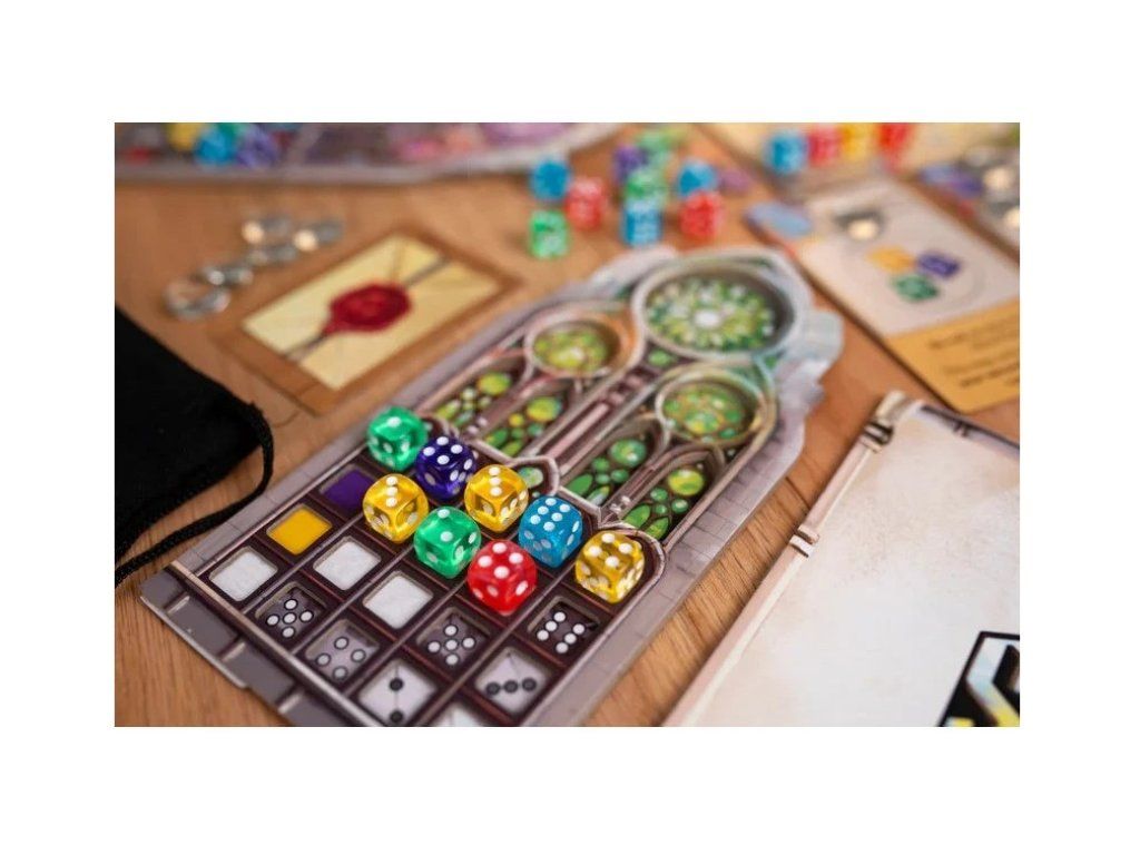 Ve hře Sagrada jsou vaše skleněné tabulky znázorněny barevnými kostkami. Máte 10 kol na to, abyste si jednu po druhé vybrali kostky a umístili je do svého okenního rámu. Dávejte ale pozor, aby vedle sebe nikdy nebyly dvě stejné barvy nebo hodnoty kostek. Splňte cíle a vytvořte harmonické mistrovské dílo barev a světla!