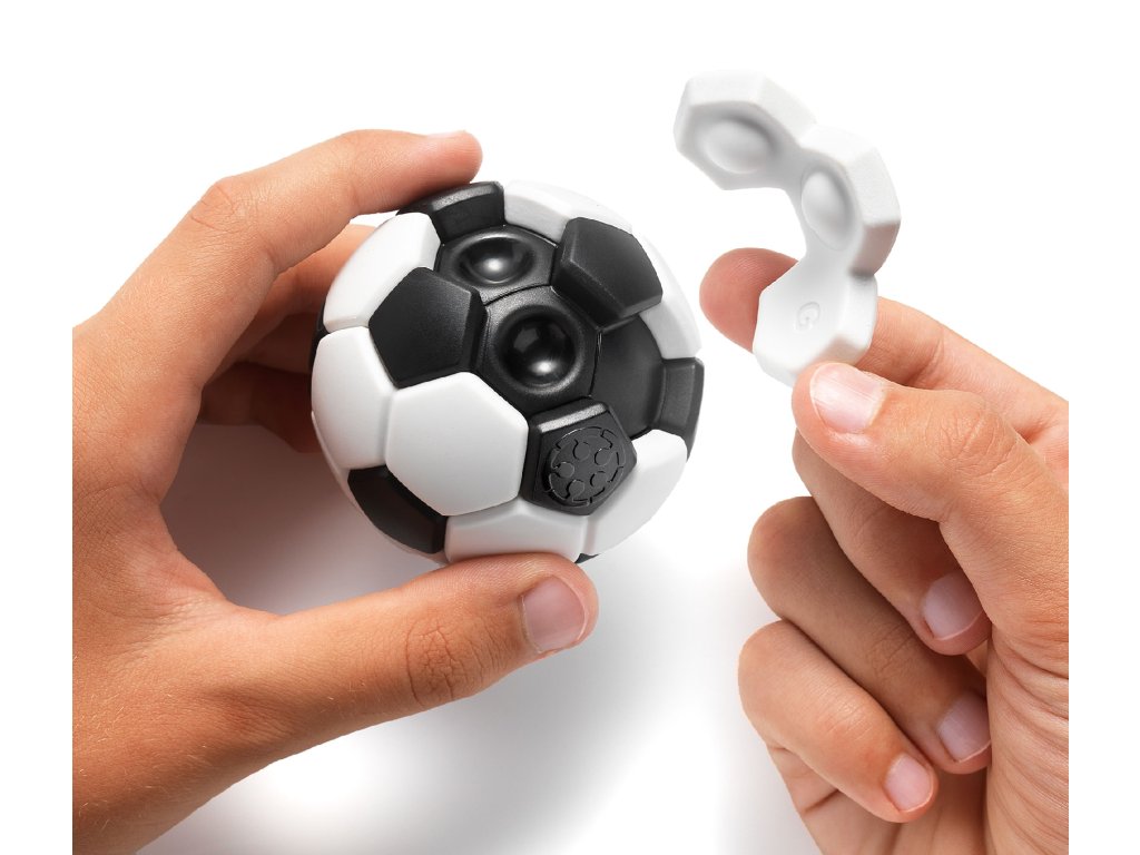 Představujeme Fotbalový míč od Smart Games – originální 3D hlavolam pro jednoho hráče, který prověří prostorovou představivost a logické myšlení. Cílem je nacvaknout všech 7 bílých dílků na černé jádro a sestavit kompletní míč.