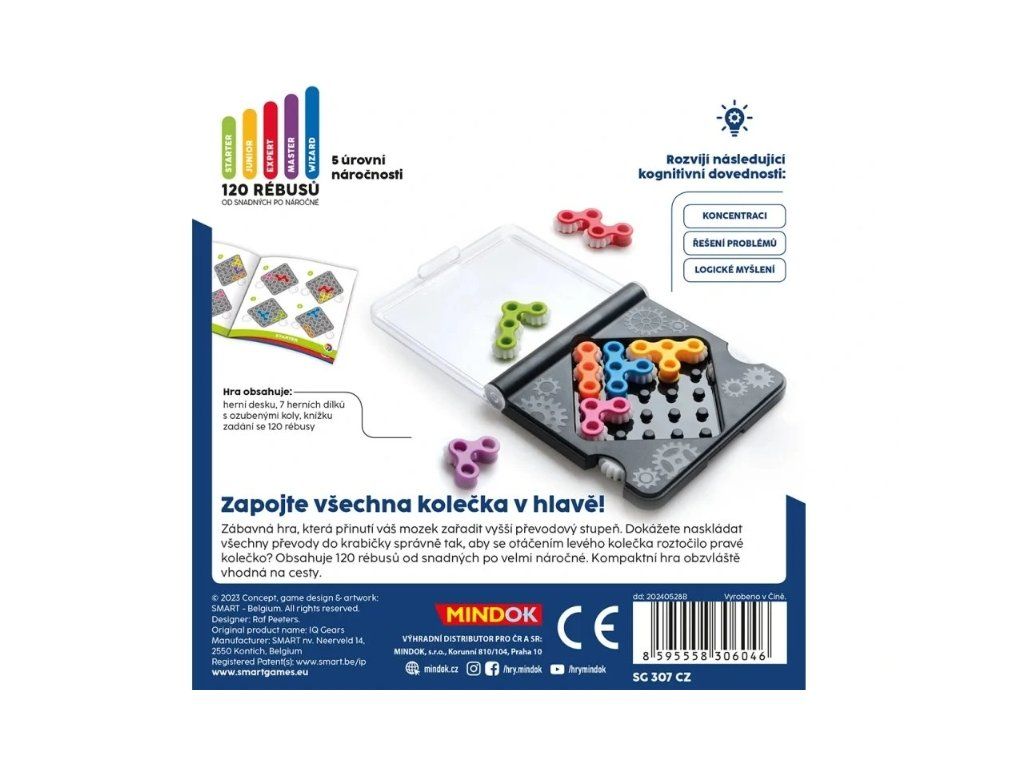 Zábavná hra, která přinutí váš mozek zařadit vyšší převodový stupeň. Dokážete naskládat všechny převody do krabičky správně tak, aby se otáčením levého kolečka roztočilo pravé kolečko? Obsahuje 120 rébusů od snadných po velmi náročné. Kompaktní hra obzvláště vhodná na cesty.