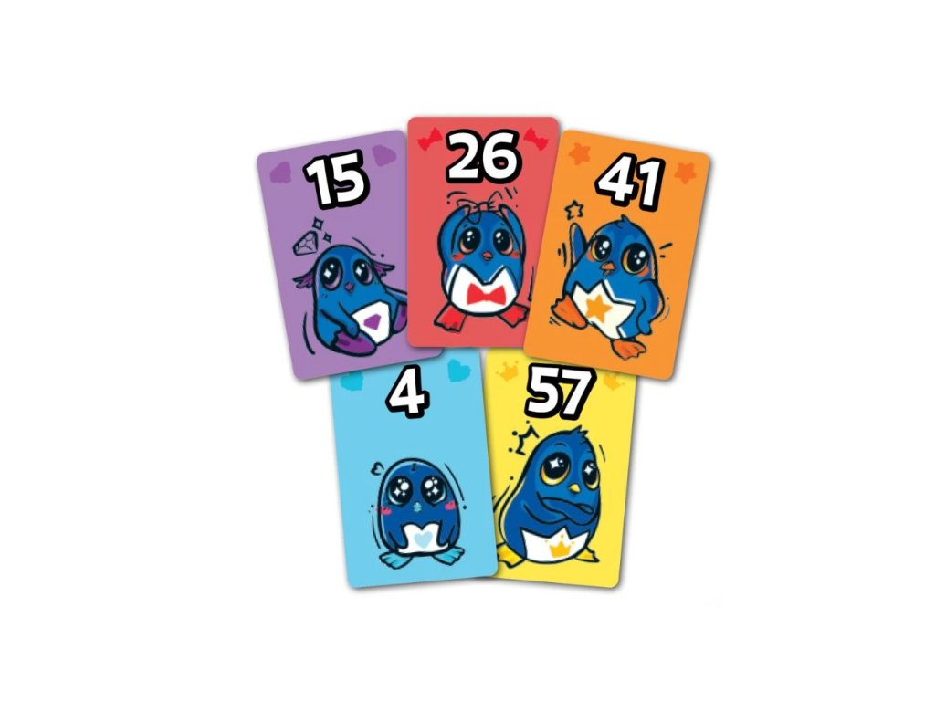 Tučňáčci je malá štychová karetní hra, ve které je cílem hráčů přilákat k sobě ty nejroztomilejší tučňáčky! Ve hře je celkem šedesát karet v hodnotě 1-60 rozdělených podle velikosti do pěti barev. Hráči mají vždy dvě karty v ruce a ten kdo rámci štychu zahraje největší, bere vše. To ale ne vždy musí být dobře! Nejroztomilejší jsou totiž jen ti nejmenší tučňáčci, za které získáváte pozitivní body, naopak za ty největší body ztrácíte! Po odehrání všech karet se spočítá, kdo si vedl nejlépe! V pravidlech najdete i variantu, kdy mají tučňáčci náhodné bodové hodnoty, nikoliv seřazené dle velikosti.